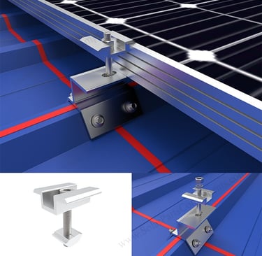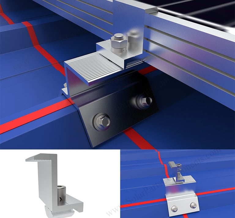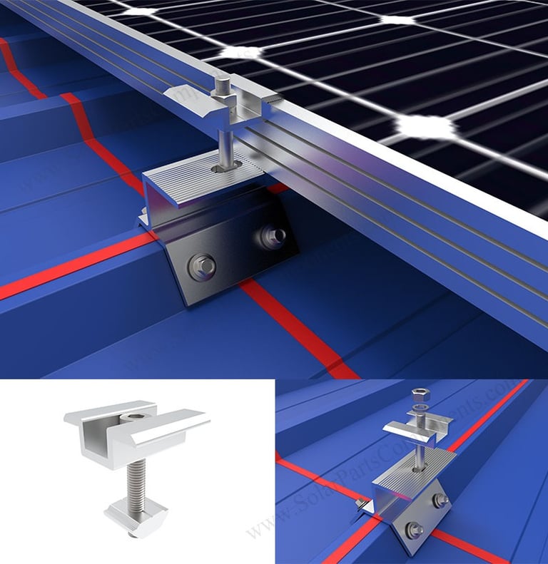 Railless solar metal roof clamps are designed for metal roofs and are easy to install. It can be directly fixed on the roof without aluminum rails, saving costs and the steps of rail installation. The clamp is one of the components of the trackless solar installation system, which can be used to install solar modules on the trapezoidal metal roof. It provides a solar installation solution with a roof attachment.